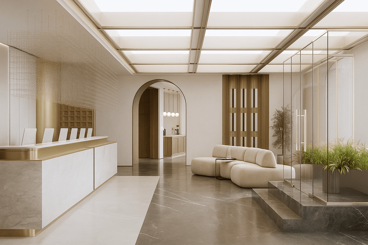 Исцеляющая среда, где дизайн служит медицине. Светлые тона, натуральные материалы и приватные зоны отдыха помогают настроиться на преображение без лишнего стресса.